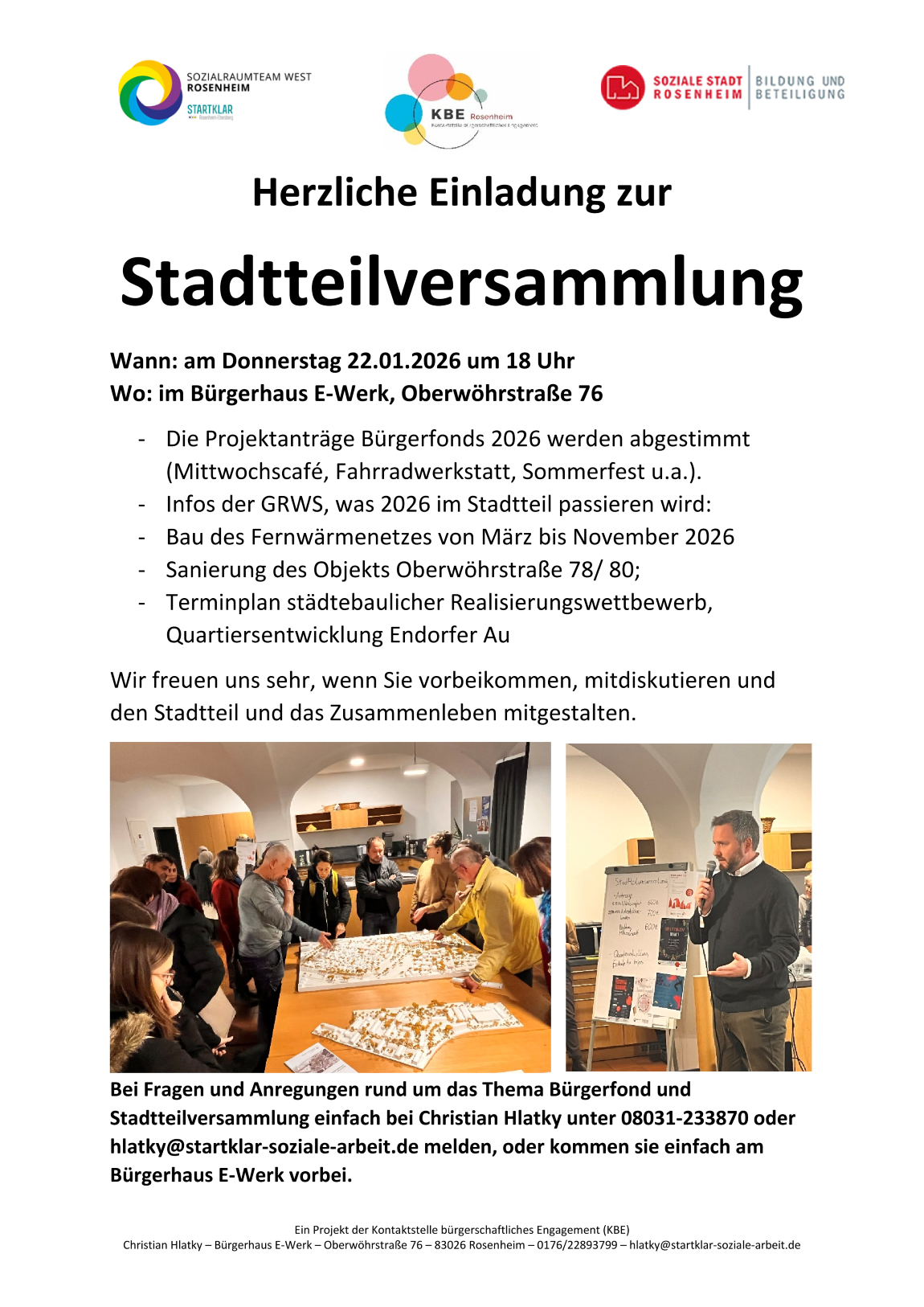 Die Kontaktstelle Bürgerschaftliches Engagement lädt im November zu zwei kostenlosen Informationsveranstaltungen ins Bürgerhaus Miteinander, Lessingstraße 77 in Rosenheim, ein....