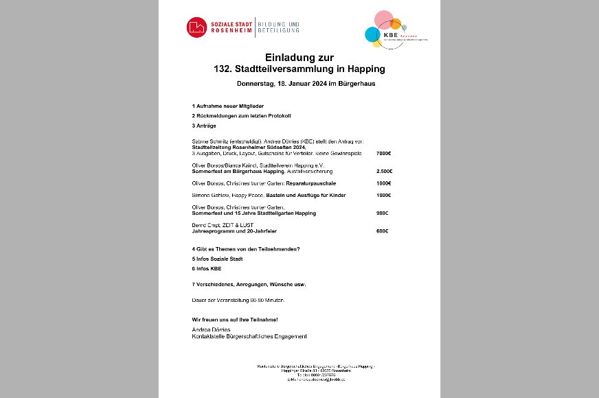 Im Bild finden Sie die Tagesordnung der STV Happing am 18. Januar. Weitere Infos zu dieser Veranstaltung finden Sie in der Rubrik „Kommende Termine“.